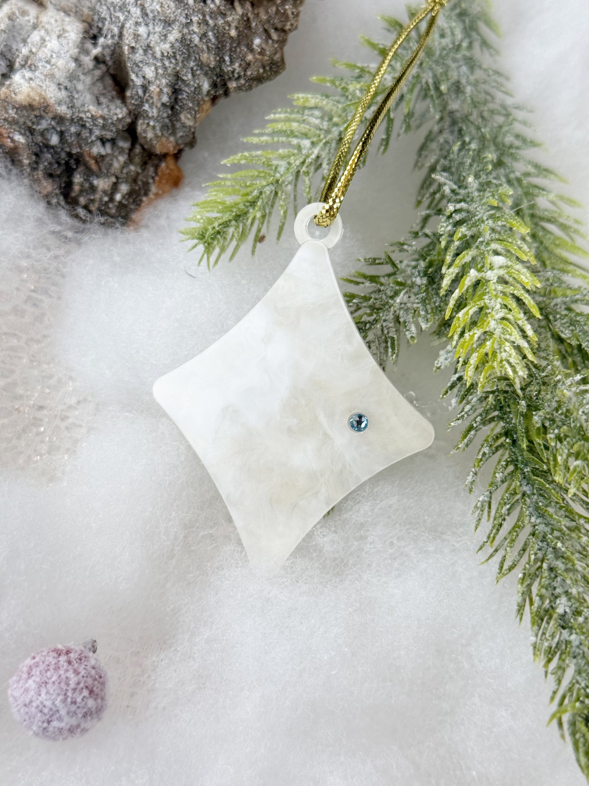 Material: Metacrilato perla dorada nacarada y decoración en cristales de Swarovski