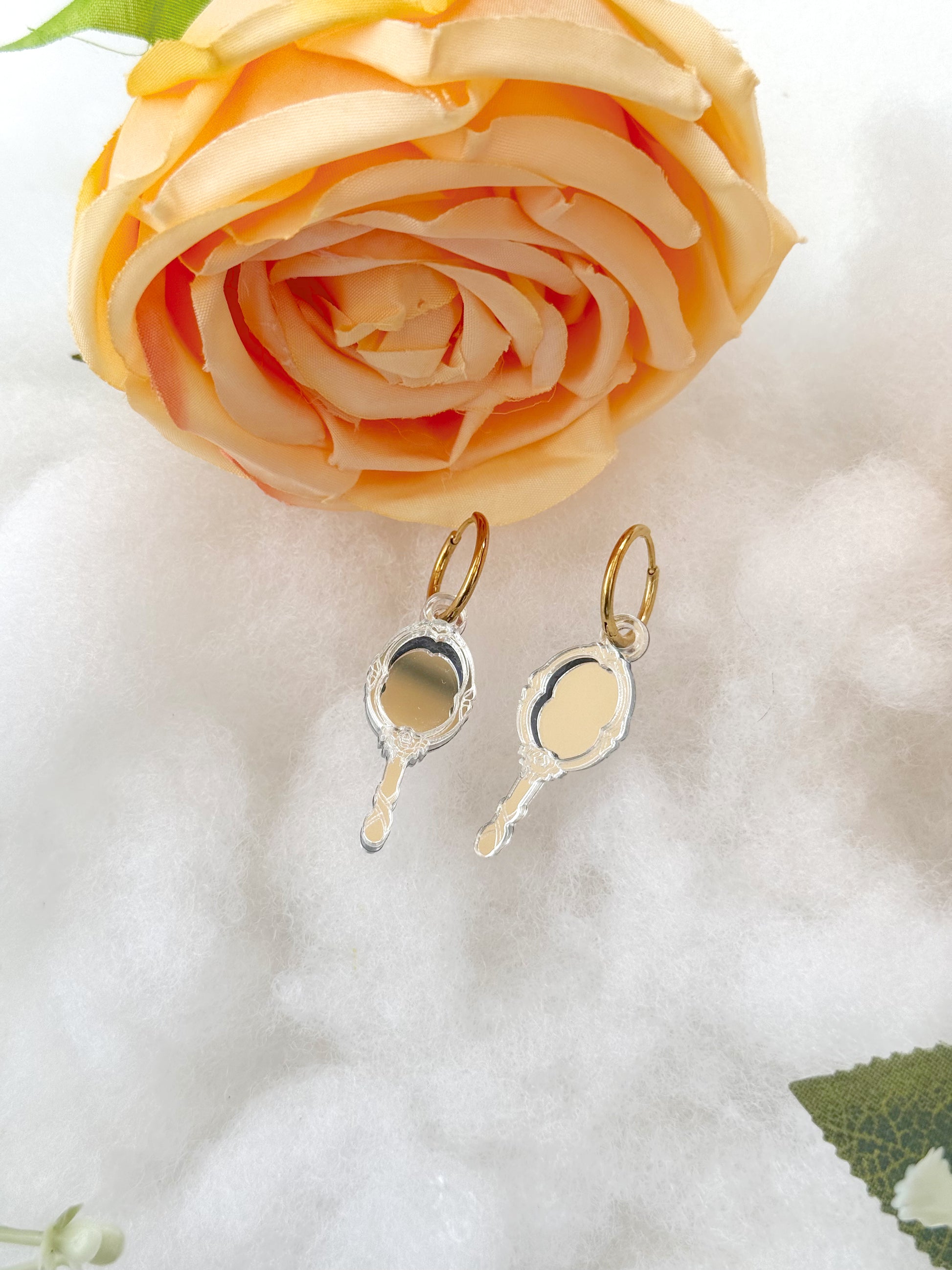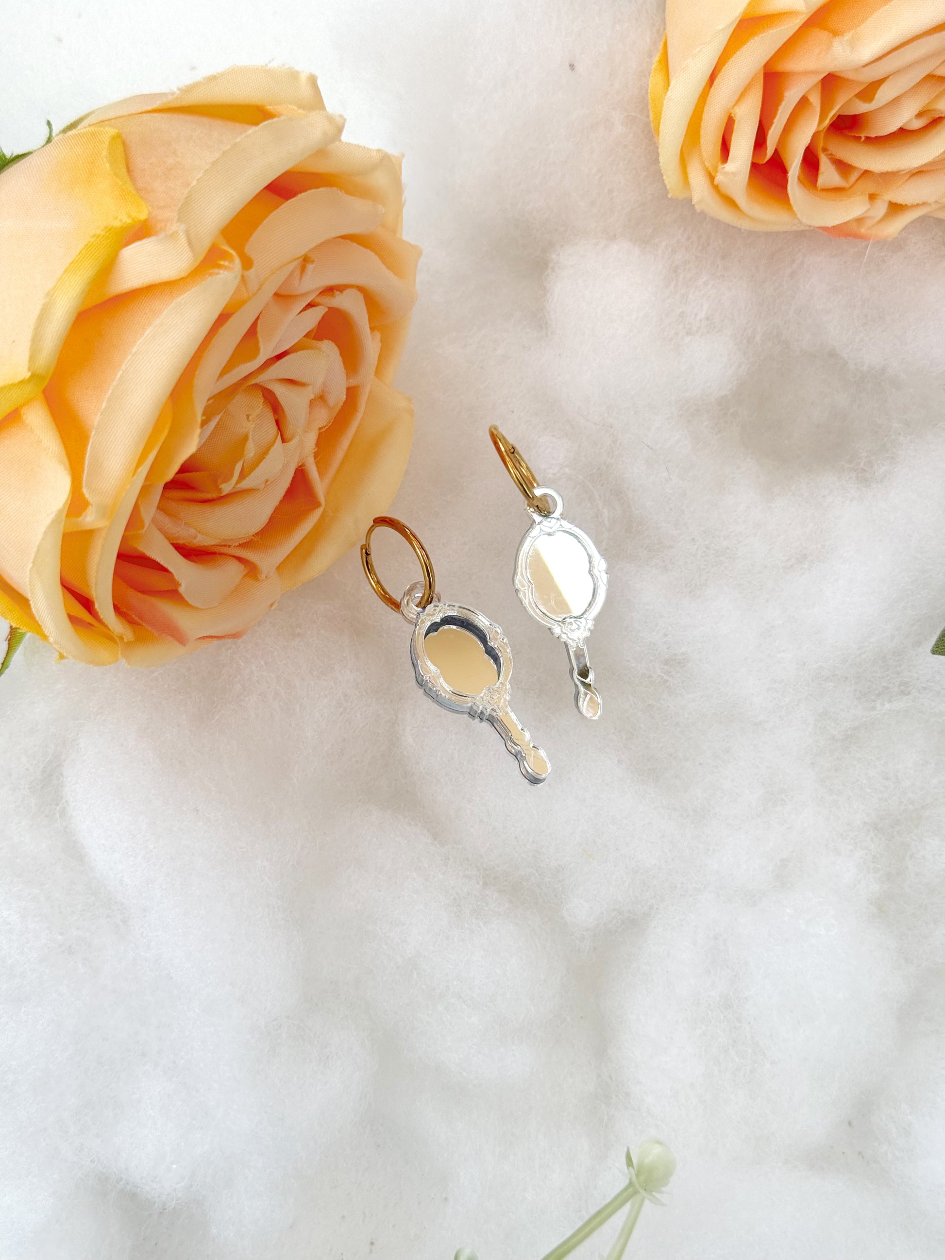 Los pendientes Reflejo están inspirados en los antiguos espejos de mano, reinterpretados en un diseño ligero y muy especial que capta la luz y aporta un brillo sutil a cada movimiento.
